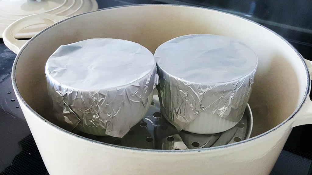 Place the bowls in the steamer and cook for 3 minutes on high heat and then 12-15 minutes on low heat. Remove from the steamer and serve.