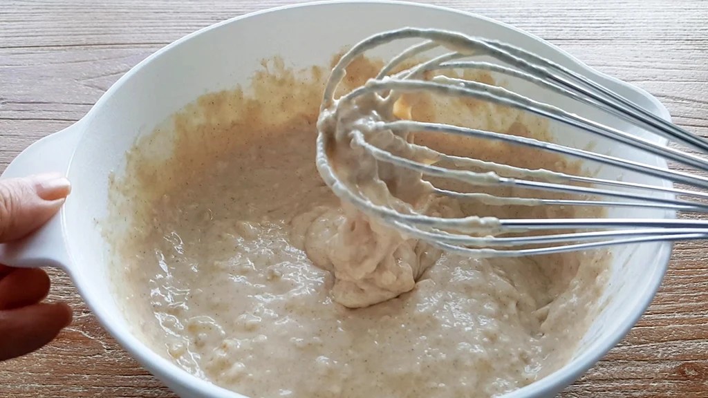 Mash the banana as smoothly as possible with a fork or potato masher. Then add all the rest of the wet ingredients and mix well until blended.