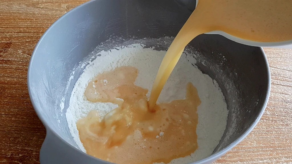 Wet Ingredients: In a bowl, beat the egg until smooth and slightly frothy. Add the rest of the wet ingredients to the bowl and whisk until thoroughly blended.