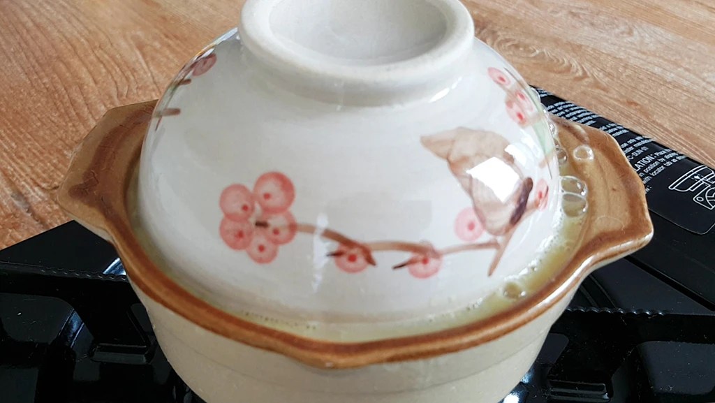 Then lower the heat and cover it with a dome-shaped lid or invert another bowl over it. Leave until bubbles form all around the edges of the pot, about 4-5 minutes. Cooking time may vary depending on the type of stove or pot you use.