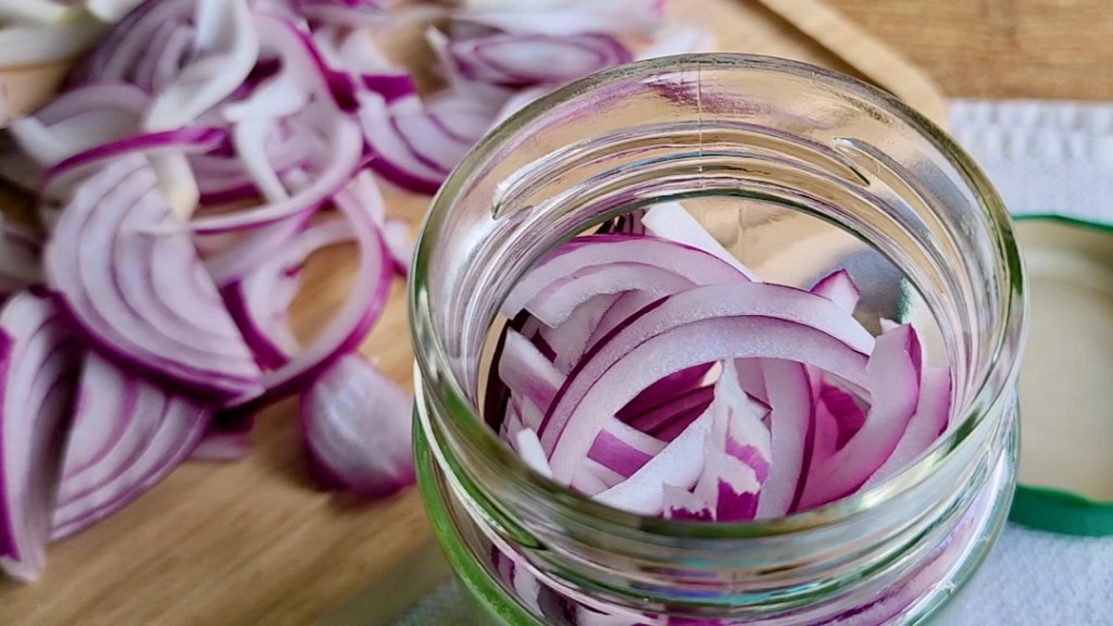 Let the mixture cool down to lukewarm temperature, then transfer the jar to the refrigerator and store for at least 30 minutes for flavor development. The onions will pickle further over time, reaching their best flavor after a few hours or overnight.